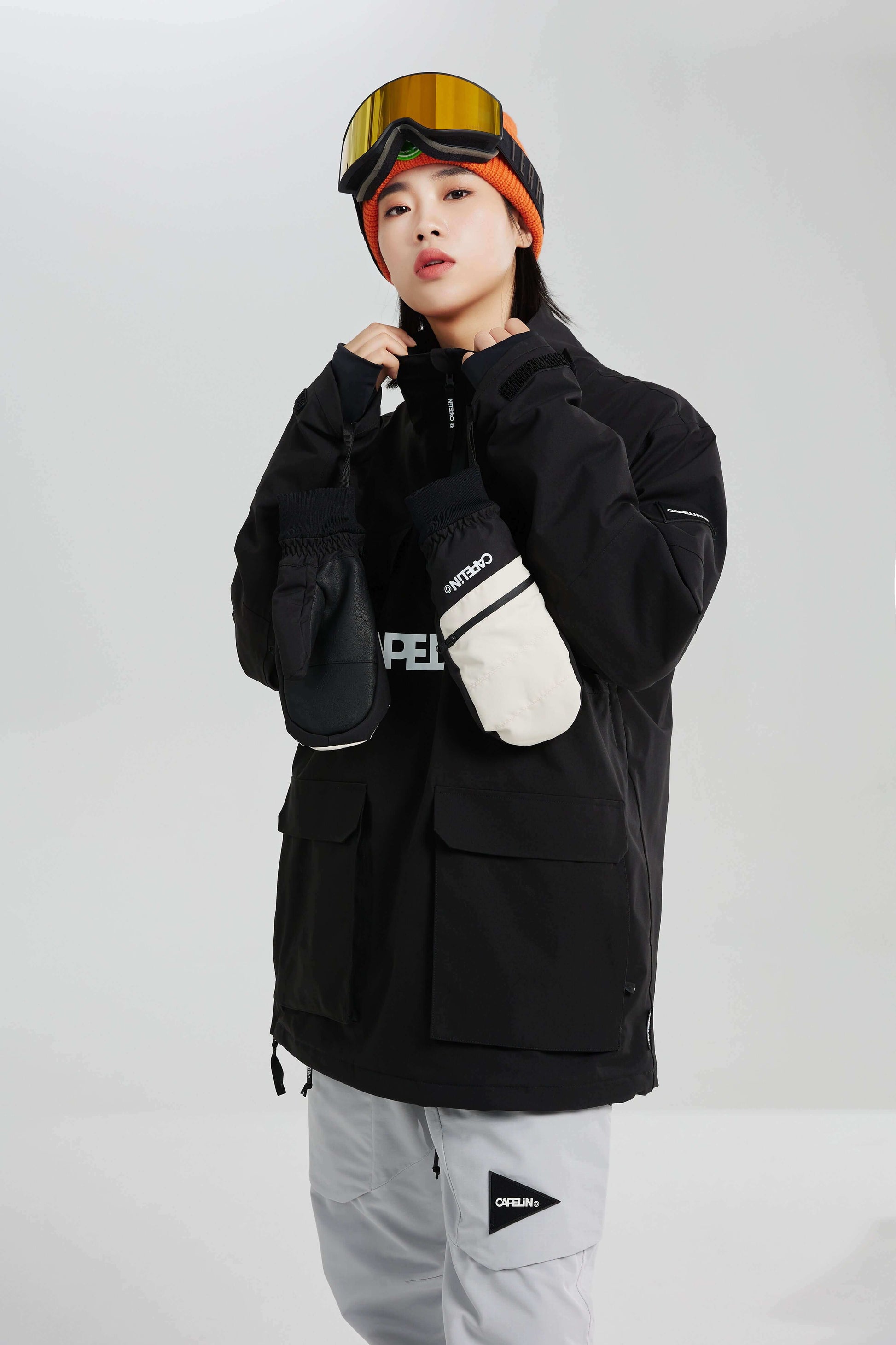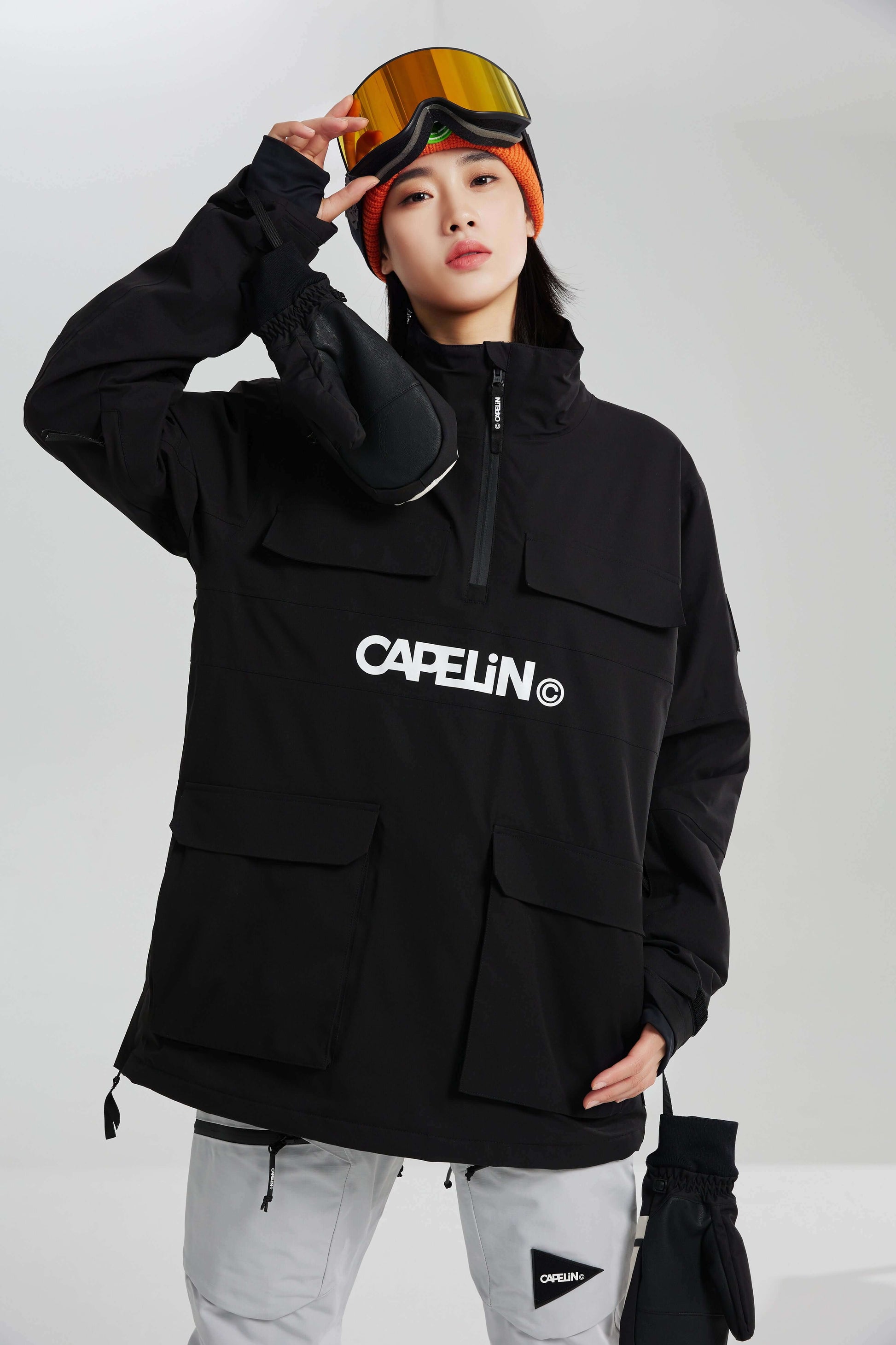 Cool, Fit, Fashion. This pullover yenna snowboard jacket features extra-short half-open zippers and two chest pockets.  100% synthetic padding + TPU laminated fabric provide high waterproofness and keep you warm.